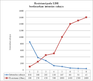 LDR (Light Dependent Resistor) merupakan salah satu komponen resistor yang nilai resistansinya akan berubah-ubah sesuai dengan intensitas cahaya yang mengenainya. LDR juga dapat digunakan sebagai sensor cahaya. Nilai resistansi dari LDR bergantung pada intensitas cahaya. Semakin tinggi intensitas cahaya (siang hari) yang mengenainya, maka semakin kecil nilai resistansinya. Sebaliknya semakin rendah